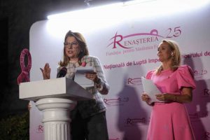 Andreea Esca, ambasaroarea Fundației Renașterea, a transmis la rândul său un mesaj de speranță și de încurajare. „Roz este culoarea speranței.Și trebuie să sperăm, dar și să știm că nu este doar o speranță învingerea cancerului de sân, pentru că un cancer de sân depistat la timp poate fi tratat ca orice altă boală. Așa cum încearcă și Fundația Renașterea să transmită femeilor, de 25 de ani, important este să mergem la un control medical în fiecare an, nu doar atunci când ne doare, când e ceva vizibil care ne panichează, pentru că o astfel de boală poate evolua fără niciun semn, dar printr-un control regulat o putem depista din timp”, a afirmat ea.